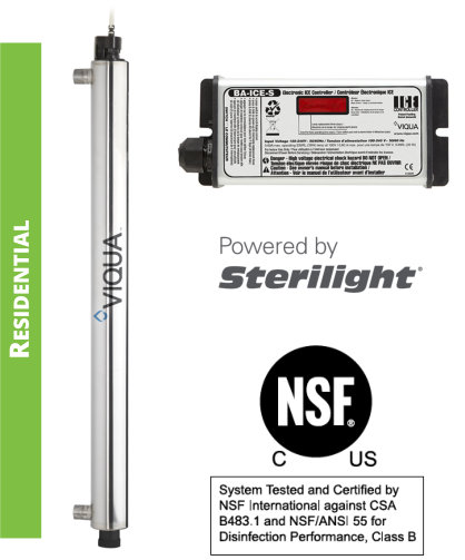 The VIQUA SV8Q-PA is a reliable, economical, and chemical-free way to safeguard drinking water in any residential application, for flow rates up to 7 GPM and carries a NSF 55 Class B certification.